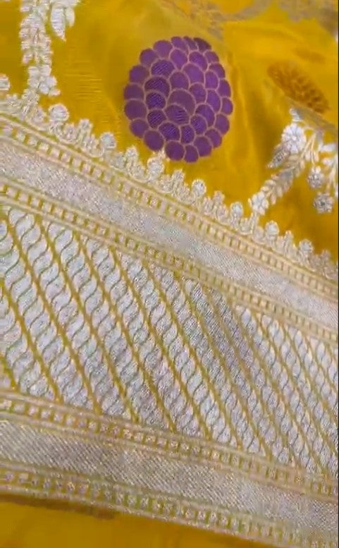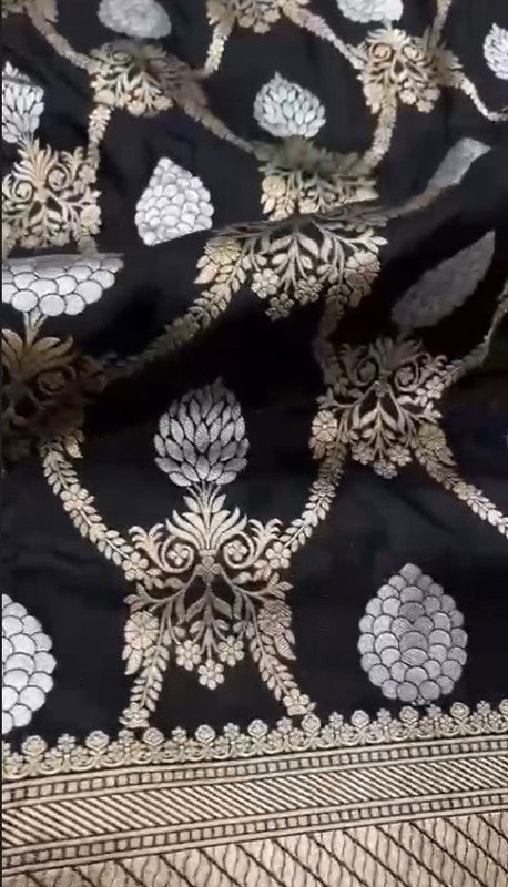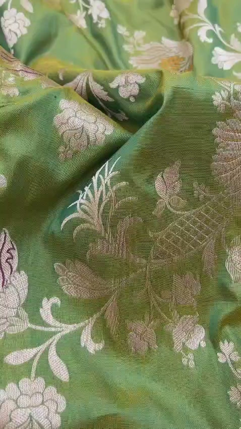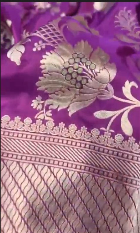 Pure banarasi silk jangla flower jal meenakari saree which is intricately designed by fashion vibes.