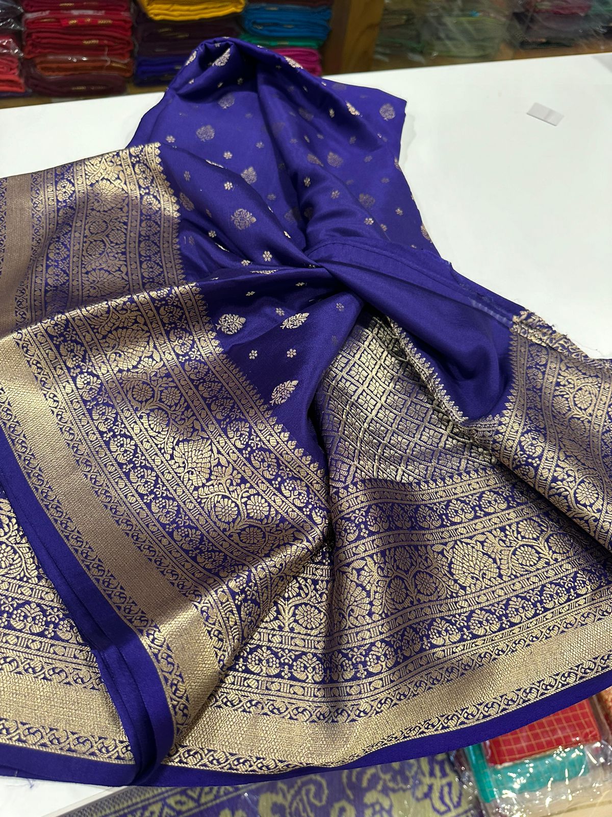 Elevate your wardrobe with the opulence and grandeur of a Banarasi Mysoore silk saree, a true embodiment of timeless tradition and exquisite craftsmanship.