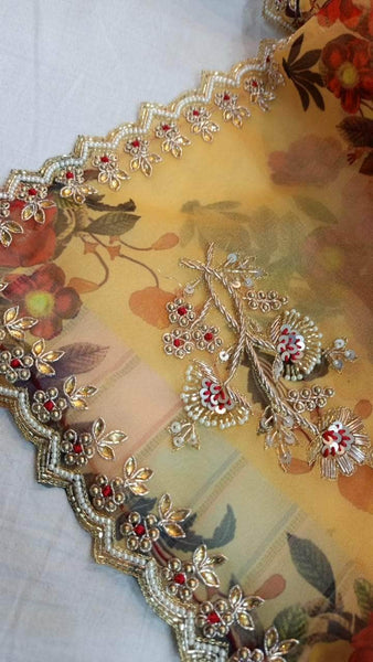 Saree has beautiful zardozi handwork embroidered border in all over the saree which gives this saree an elegant look.