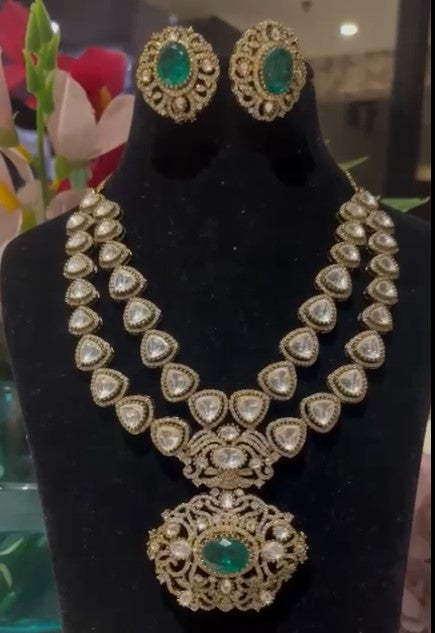 Beautiful Moissanite Kundan Doublet Stone Necklace Set