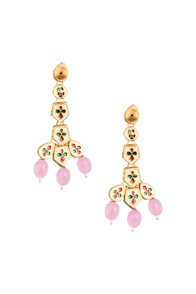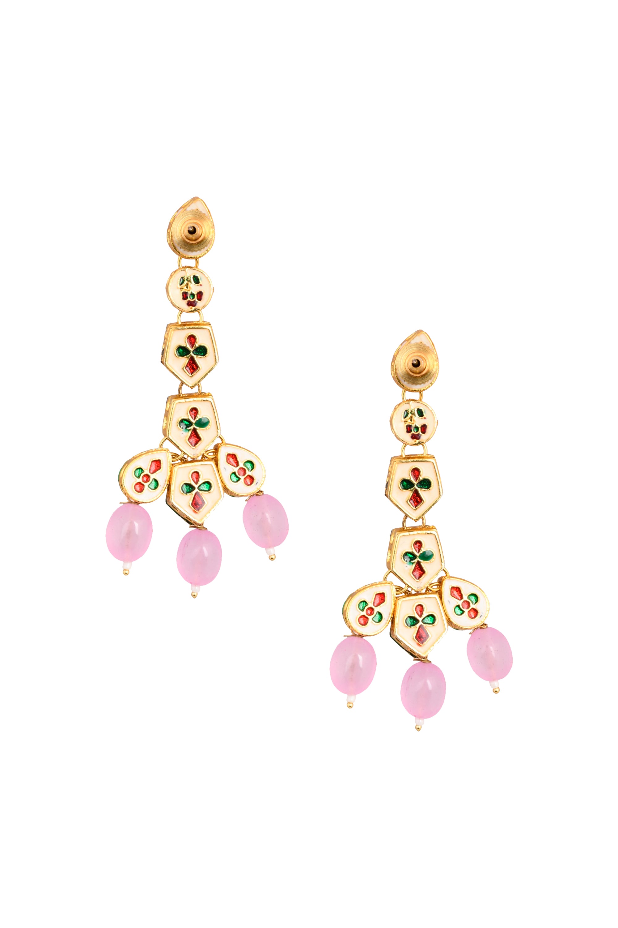Beautiful Pink Gold Tone Handcrafted Kundan Earrings