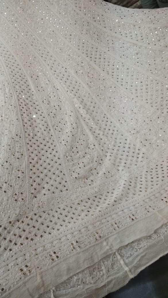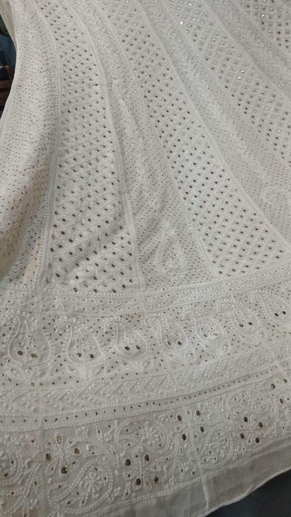Look beautiful with this Chikankari Anarkali Wedding Suit. Exclusive high quality fabric is used with designer fitting and details.