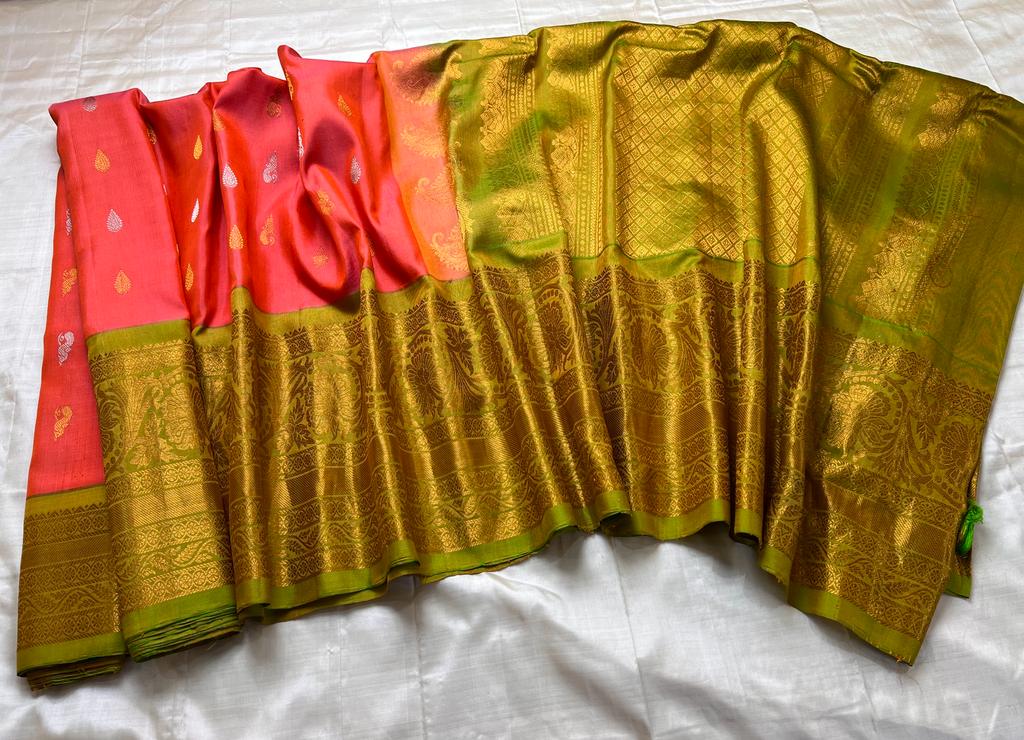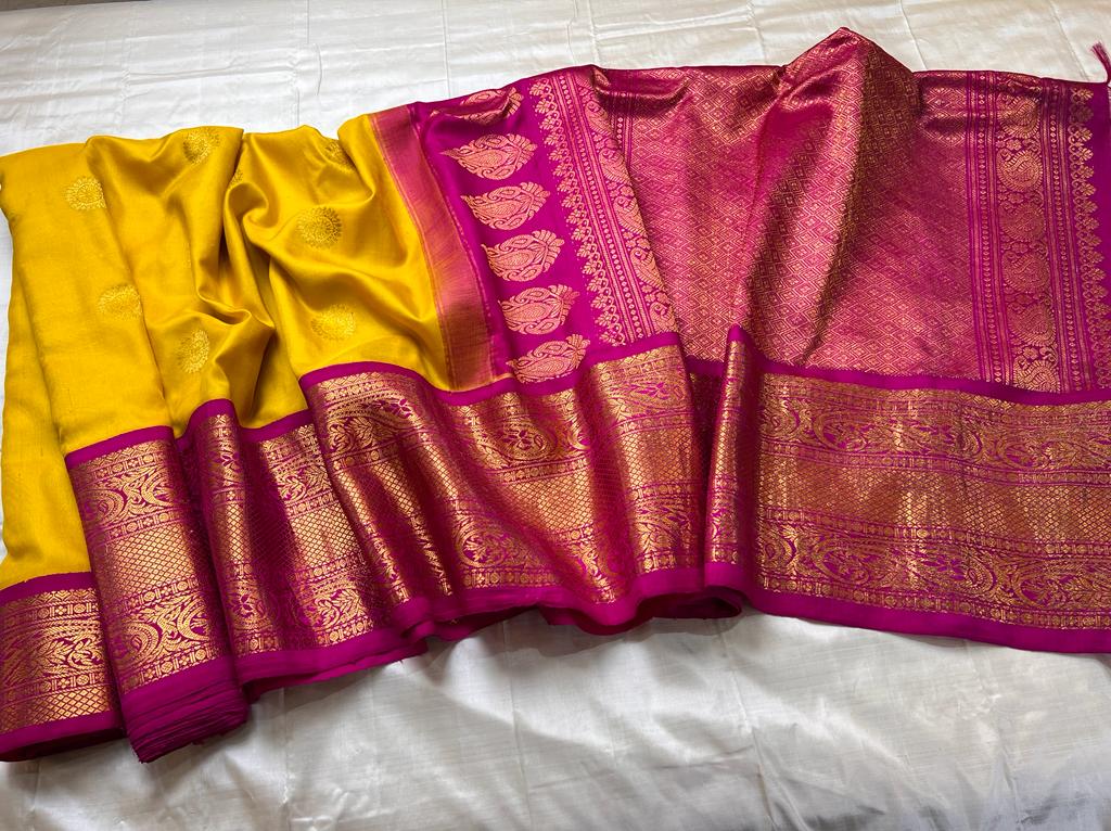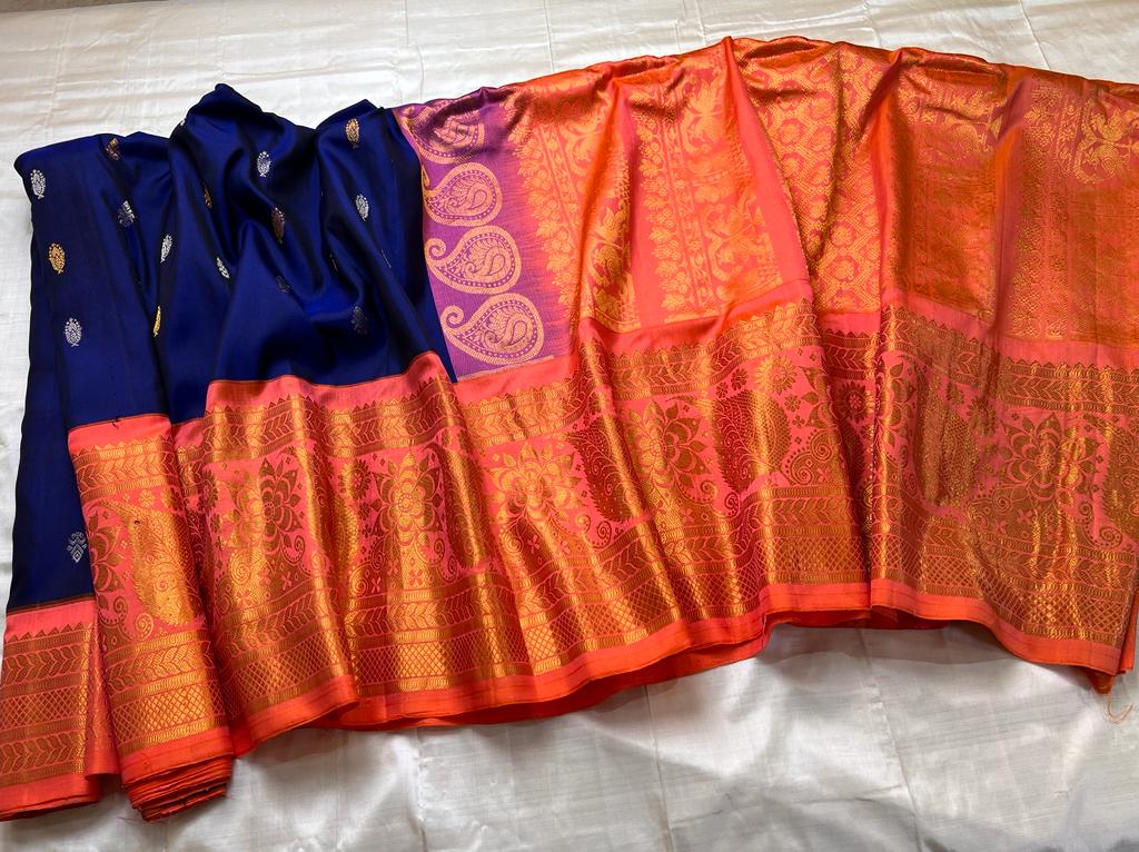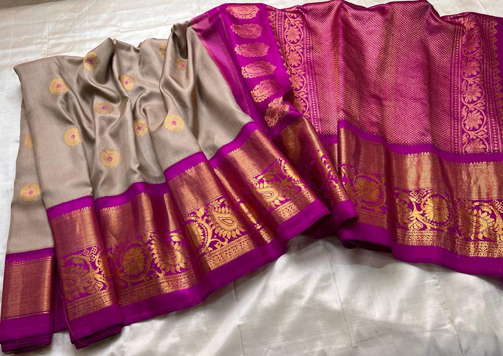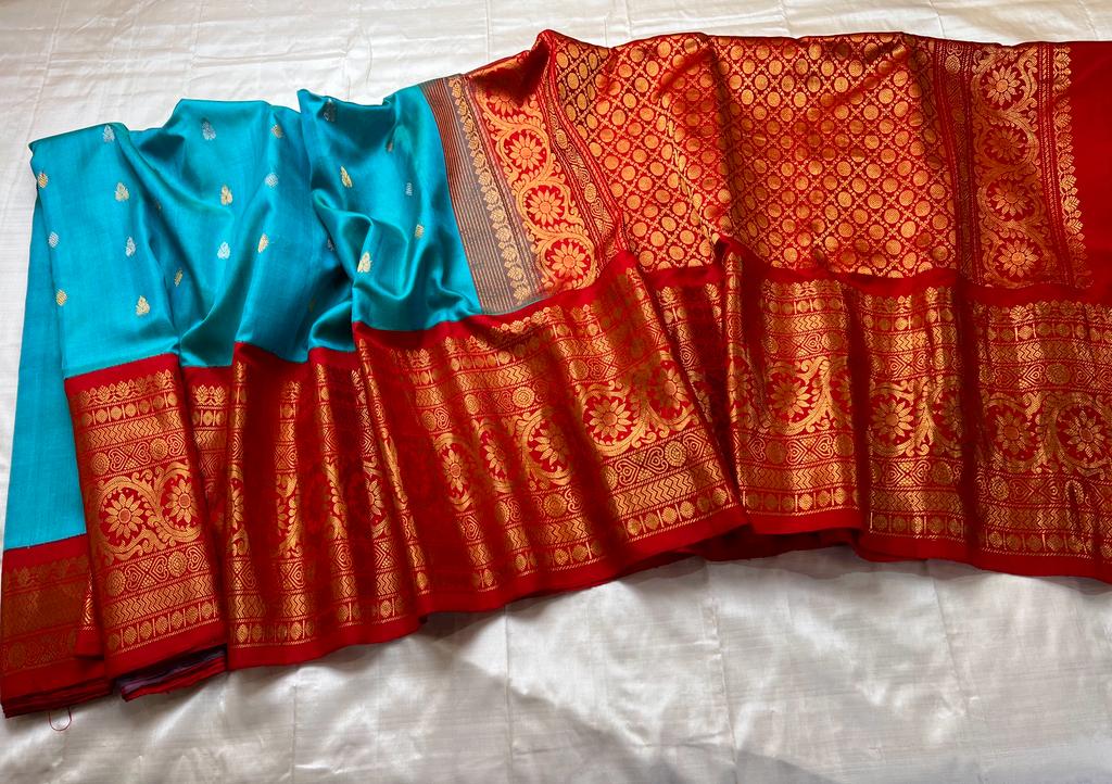 Embrace the timeless allure of tradition with our Gadwal Pure Silk Handloom Saree adorned with a Kuttu Temple Border. The Kuttu Temple Border, intricately woven with precision, adds a touch of divine charm to the saree, making it a cherished piece for special occasions. Whether worn for weddings, festivals, or cultural events, this saree captivates with its timeless beauty and cultural significance