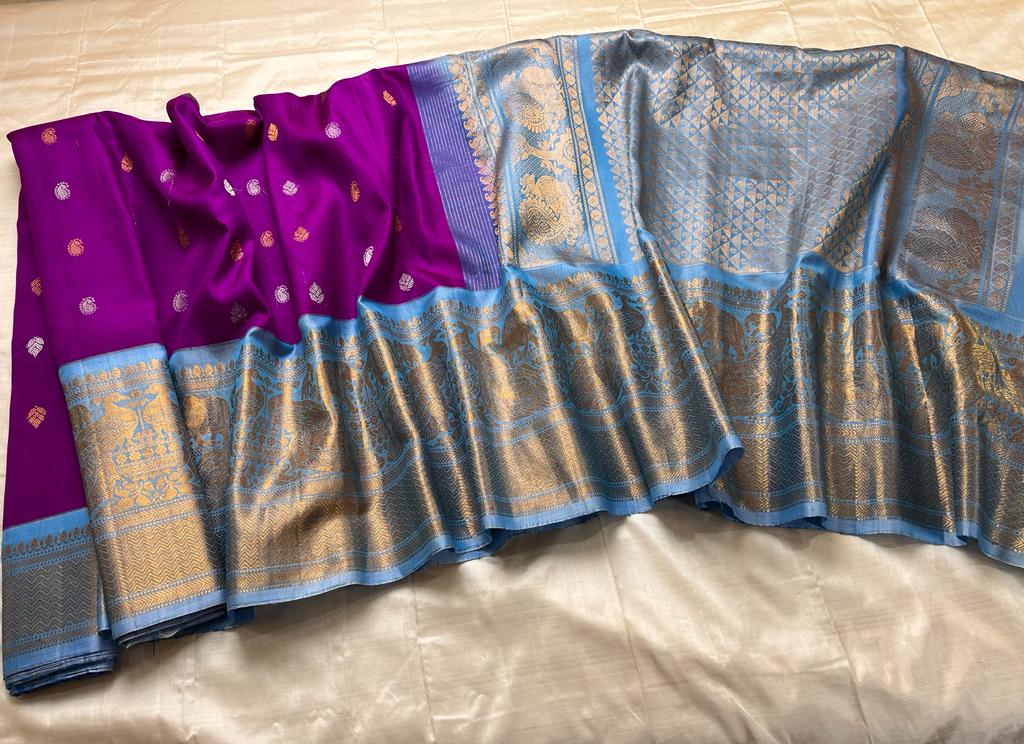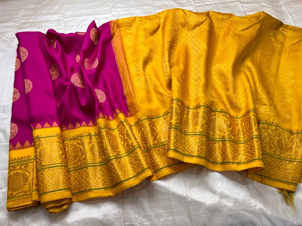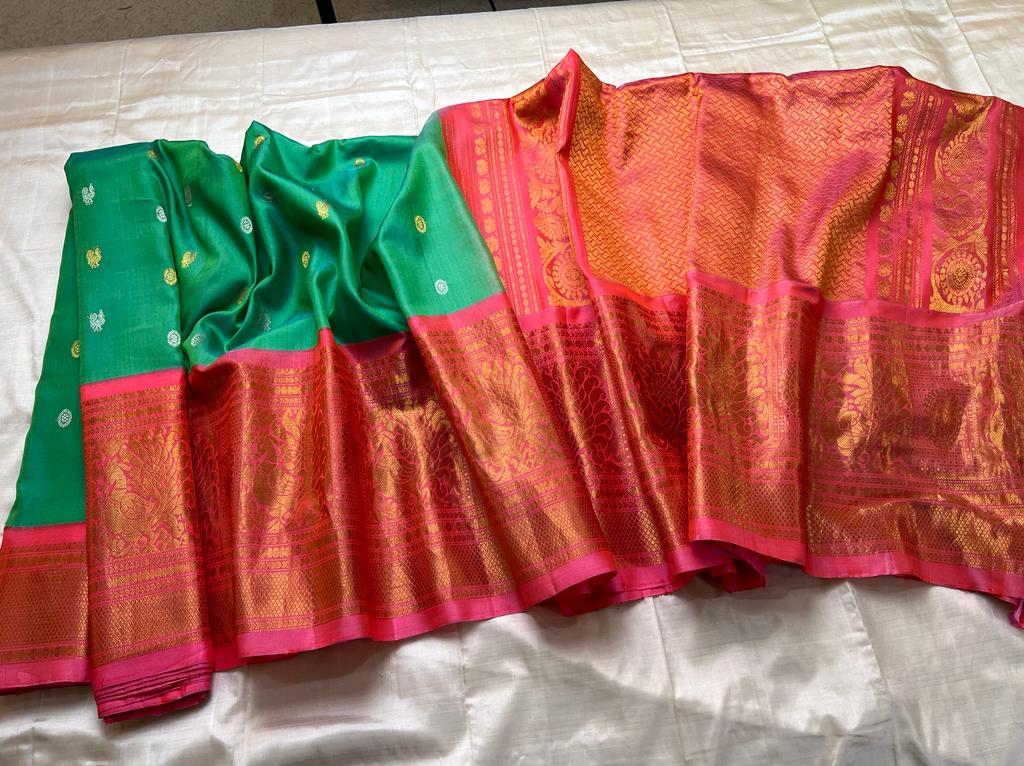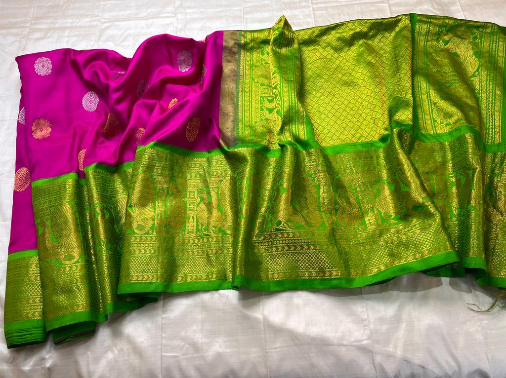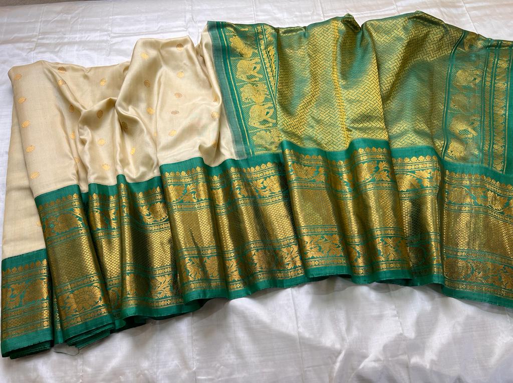 Gadwal Pure Silk Handloom Saree With Kuttu Temple Border