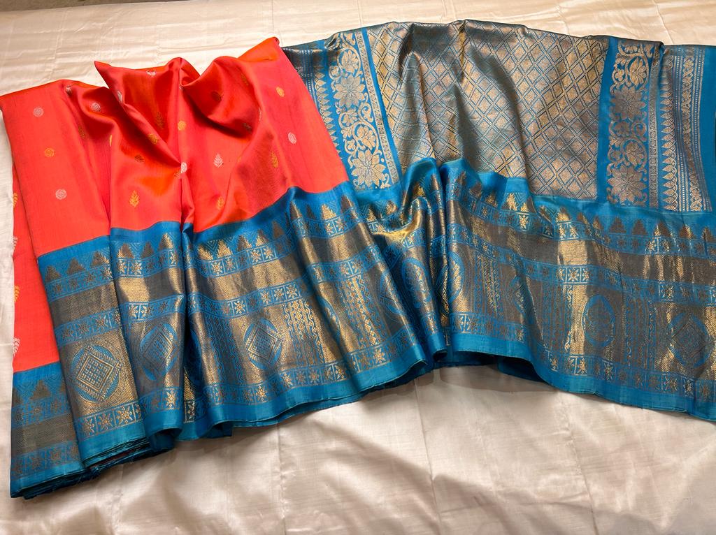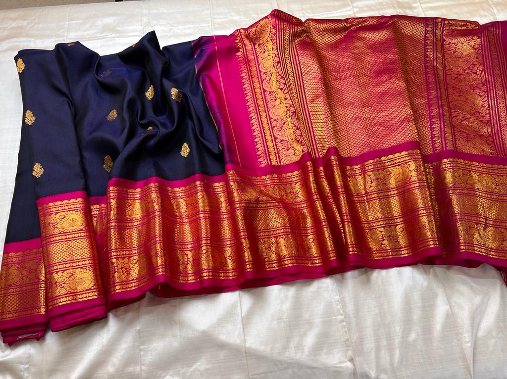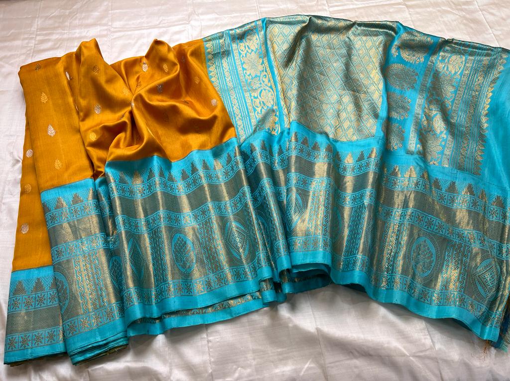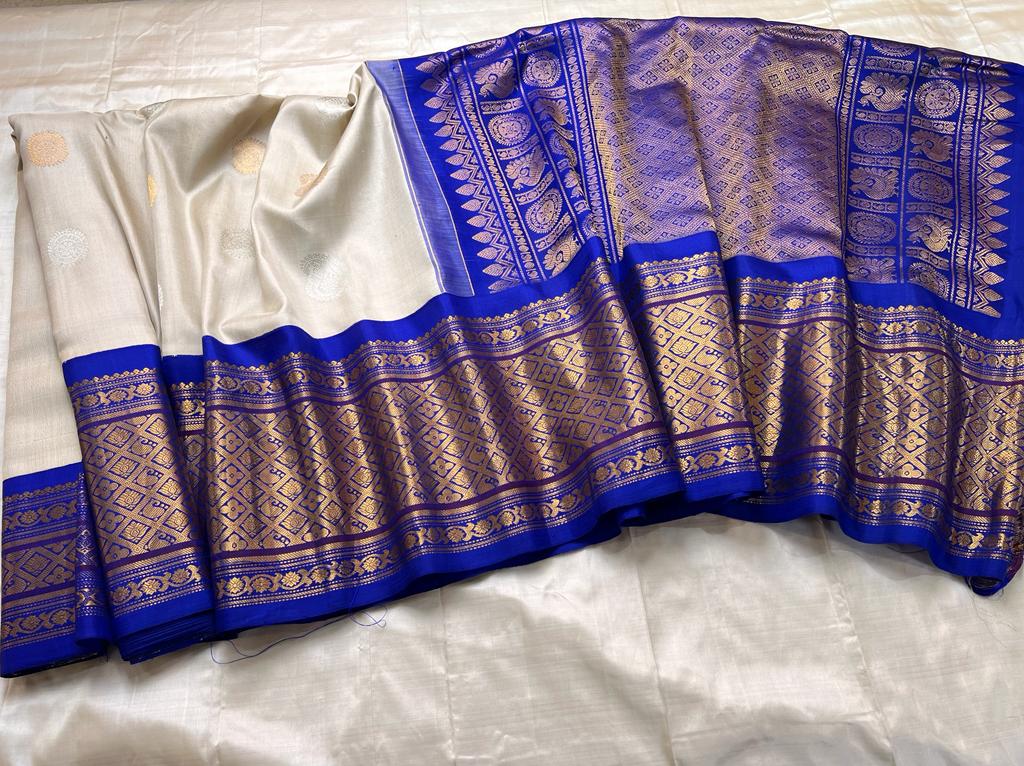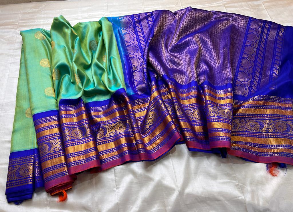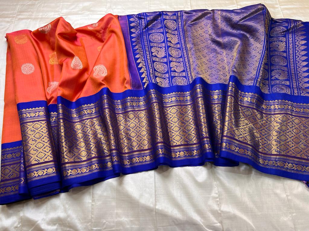 Gadwal Pure Silk Handloom Saree With Kuttu Temple Border