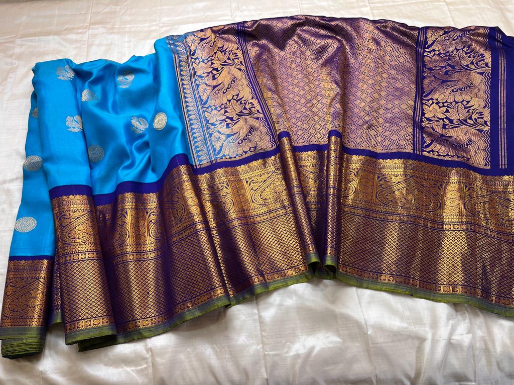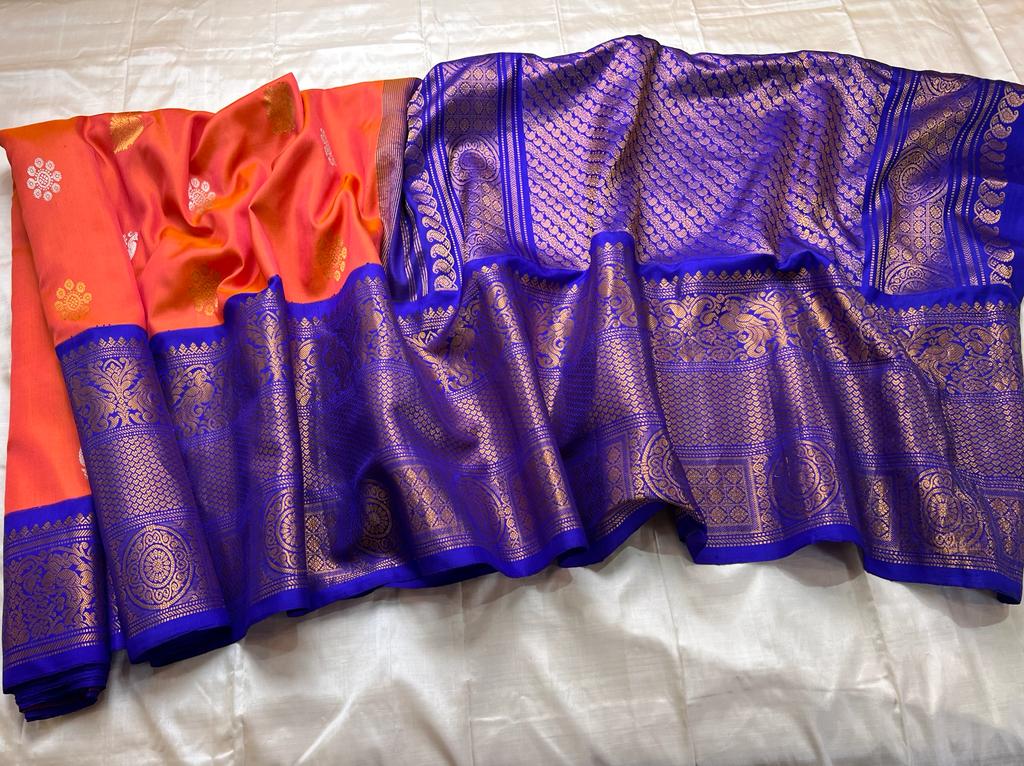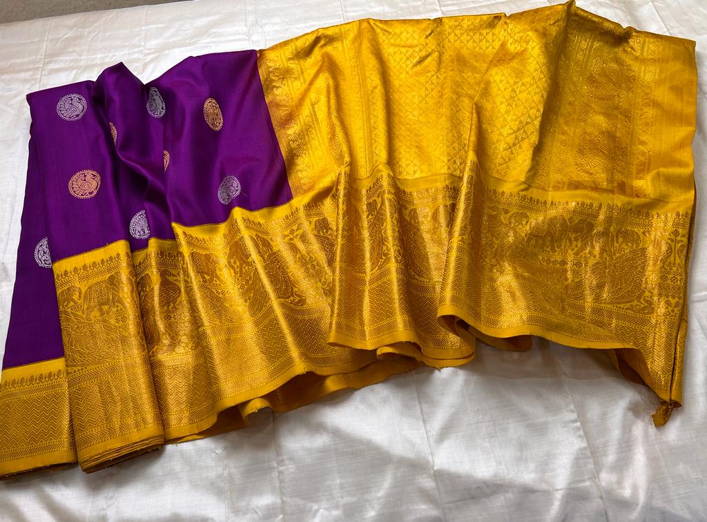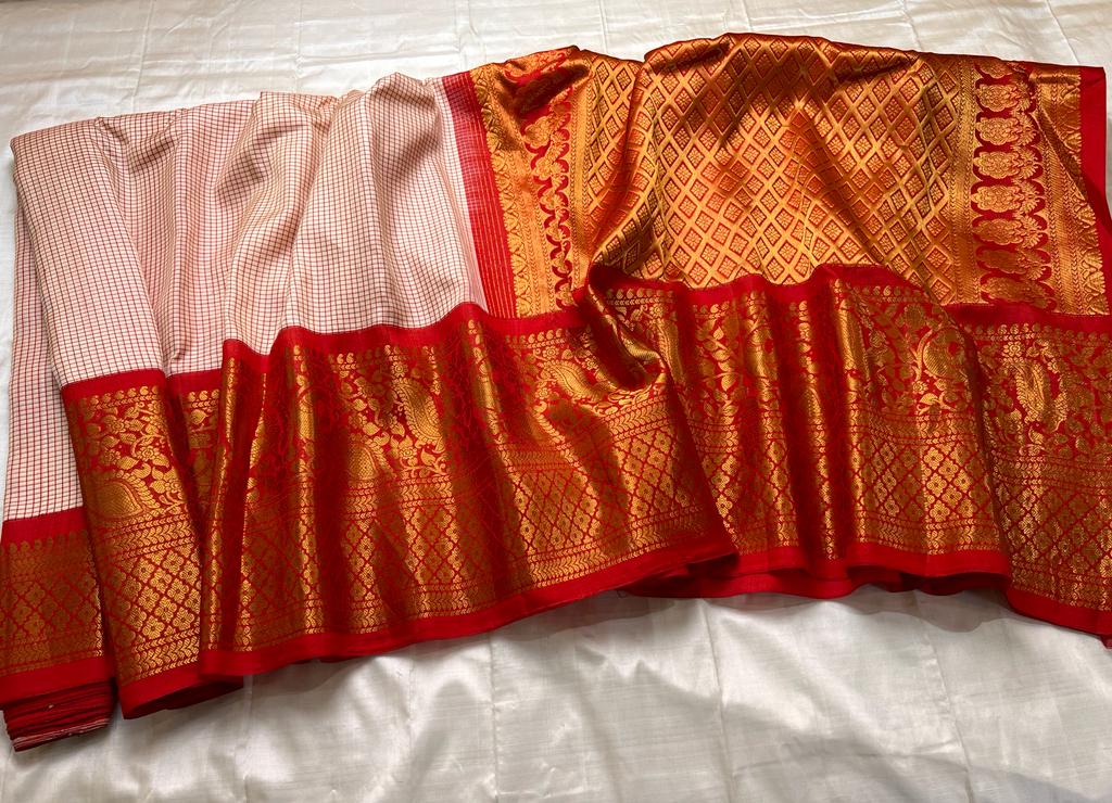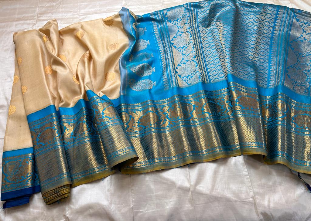 Gadwal Pure Silk Handloom Saree With Kuttu Temple Border