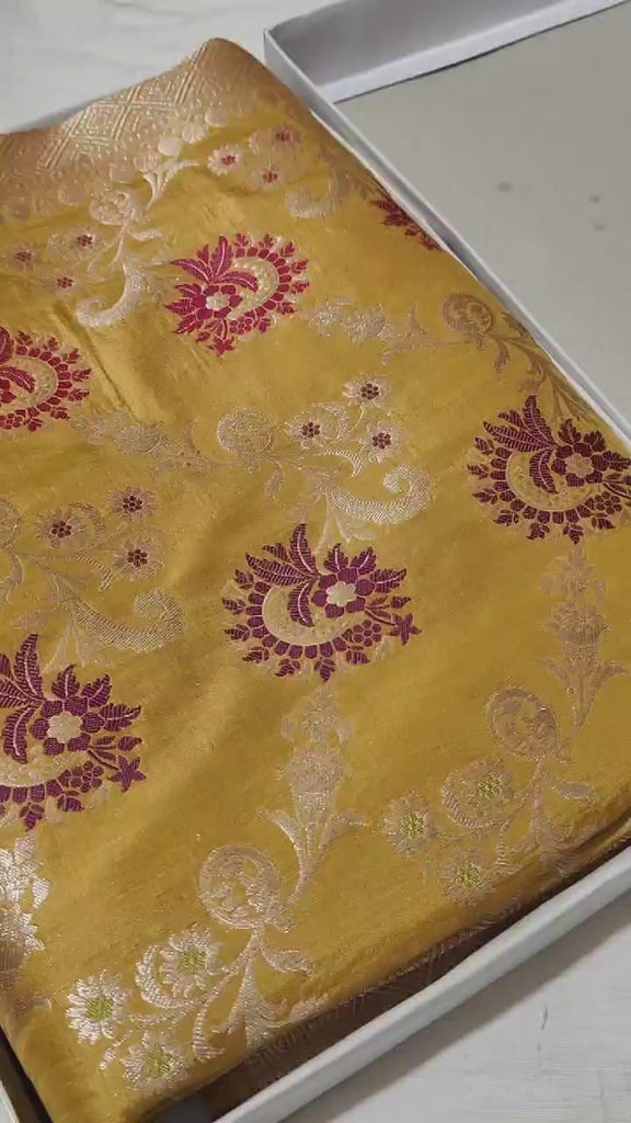 Handloom Woven Banarasi Khaddi Katan Meenakari Border Silk Saree