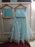 The fabric used in lehenga and choli is Georgette. Comes with Soft Net dupatta with a matching border and sequin work.