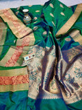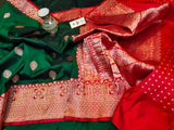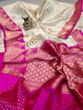 Zari work on the saree gives it a traditional look that's perfect for ethnic functions. There is antique zari work in the border and also all over the saree.