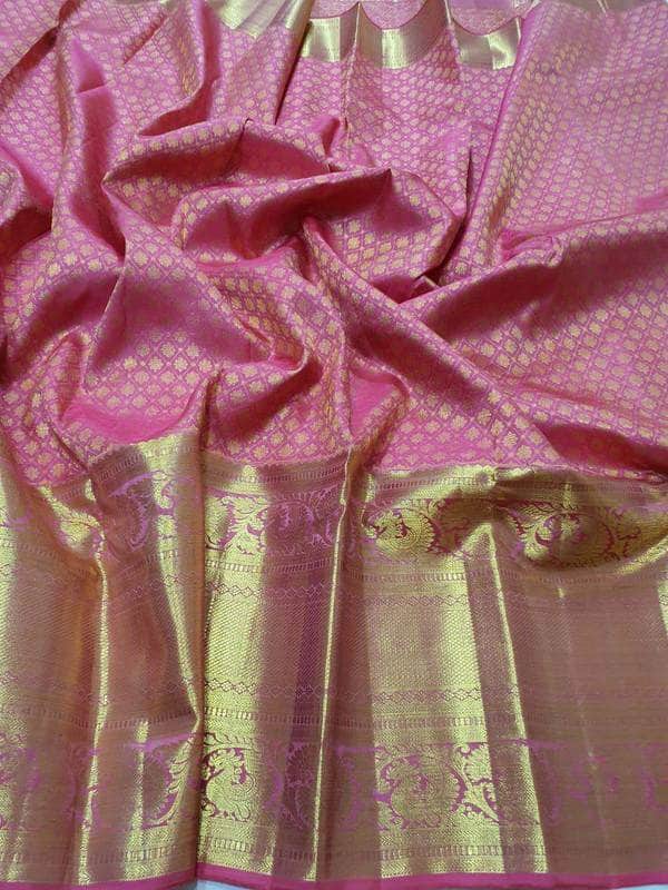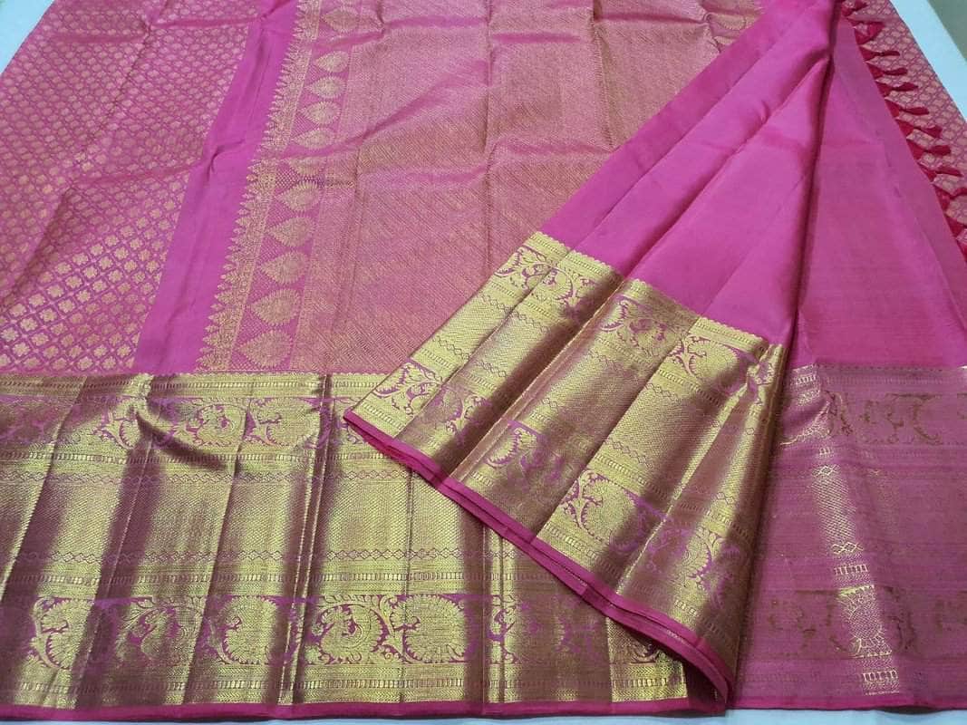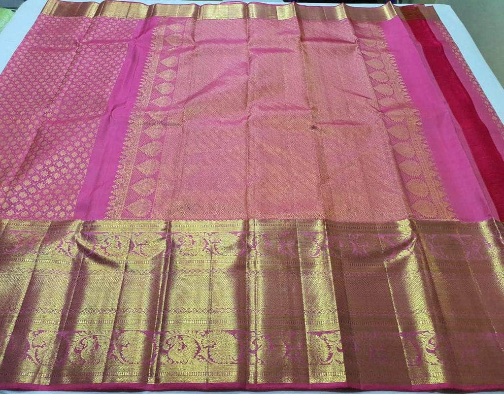 This is an exclusive pure Kanjivaram Silk Saree with beautiful zari pattern weaved traditional broad border in all over saree.