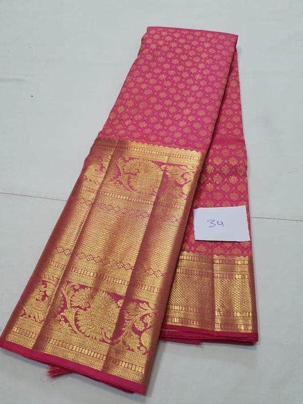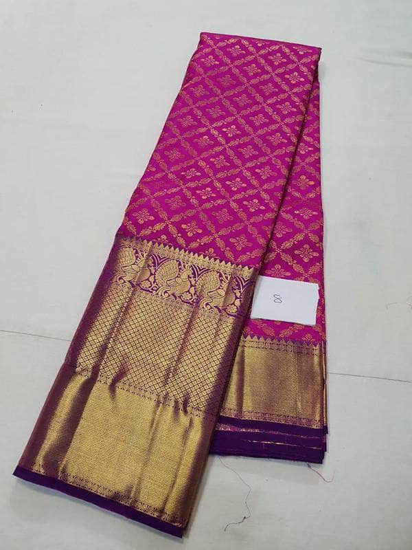 This is an exclusive pure Kanjivaram Silk Saree with beautiful zari pattern weaved traditional broad border in all over saree.