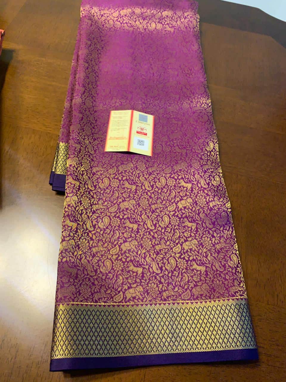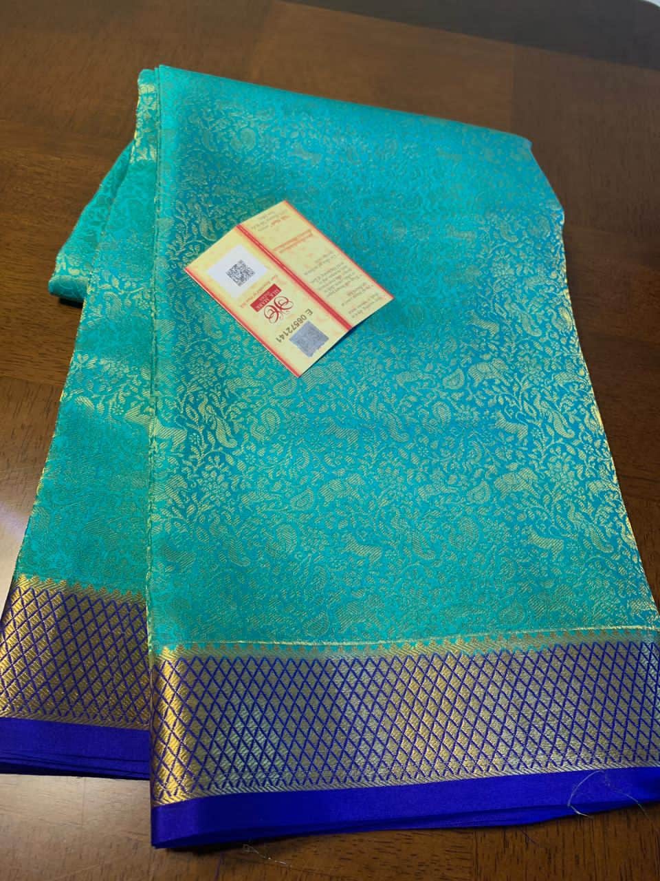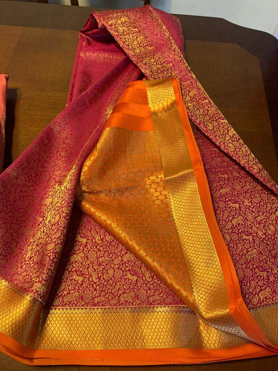 Vana Singaram Pattern. Finished with grand zari border. Come with rich zari pallu with contrast blouse