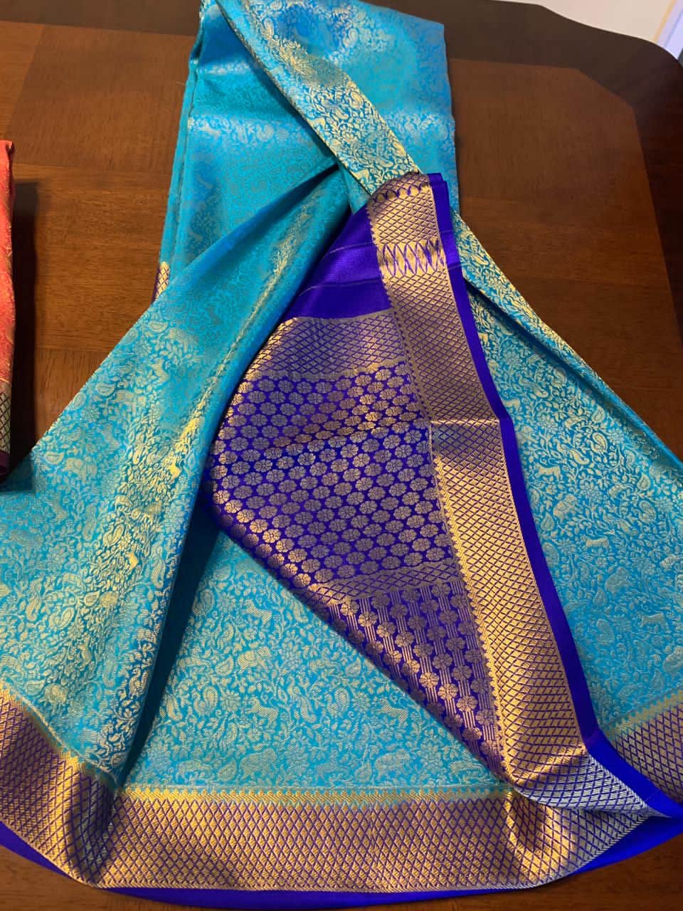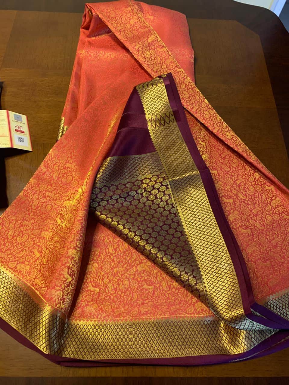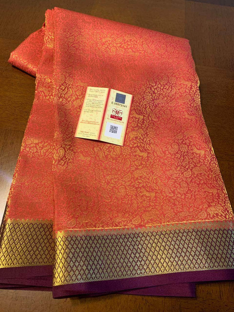 Vana Singaram Pattern. Finished with grand zari border. Come with rich zari pallu with contrast blouse