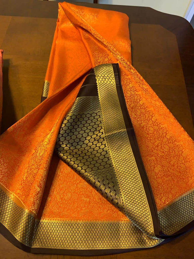 Latest Pure brocade South Silk Sarees by Fashion Vibes. 100 gram thickness and comeswith rich pallu. These sarees have won every woman's heart because of their range of colors and beautiful designs. Pure Brocade South Silk Sarees represent the beautiful elegance and the epitome of the beauty in Indian women.