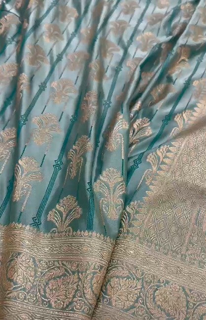 - Exclusive Mashru Satin Silk Light Blue Saree