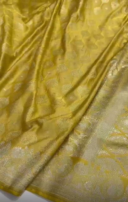 Pure Mashru Silver Zari Work Satin Silk Designer Golden Saree