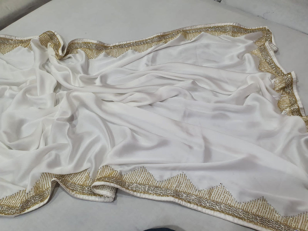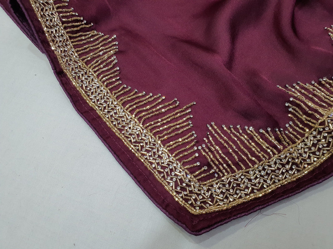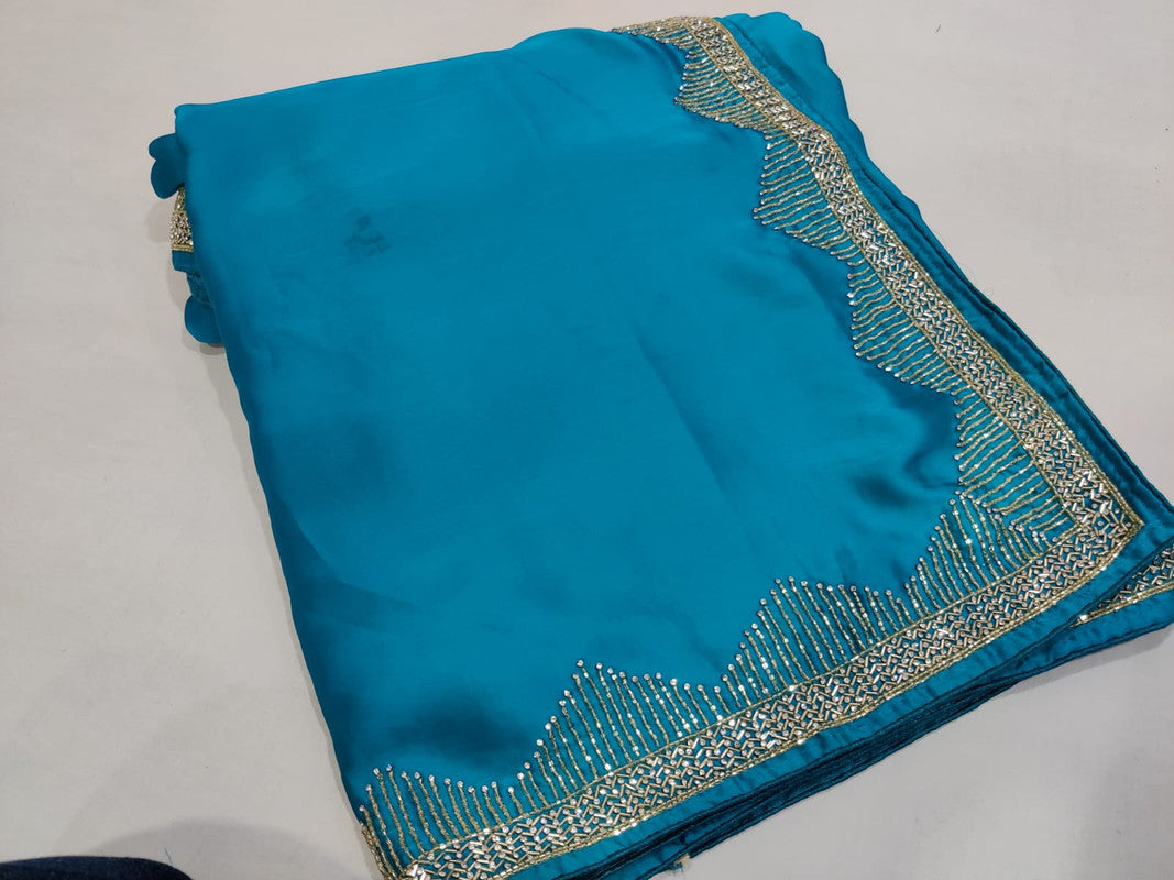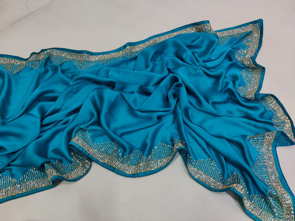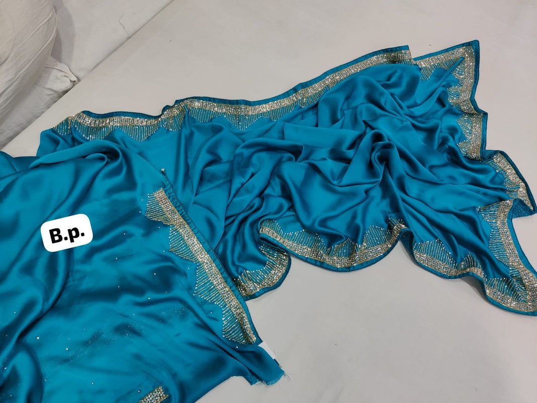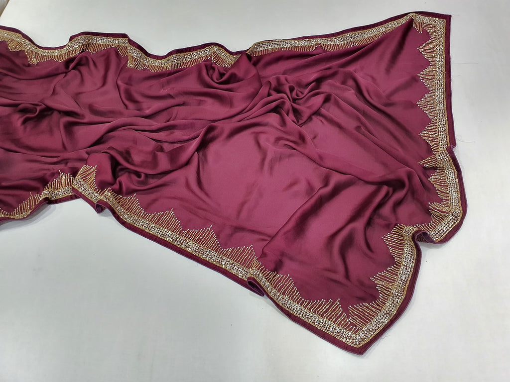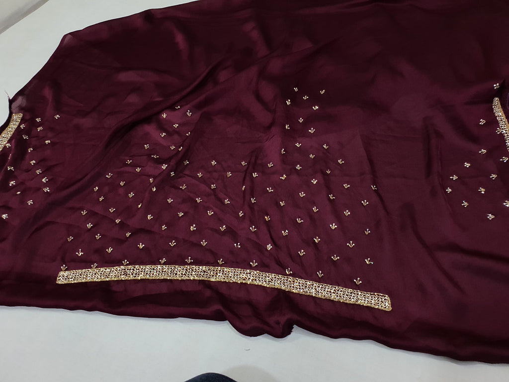 Introducing our Pure Satin Silk Saree with Handwork, a captivating blend of luxury and artistry. Crafted from the finest quality satin silk, this saree drapes beautifully, exuding elegance and sophistication. The intricate handwork adorning the saree adds a touch of exquisite detailing, enhancing its allure and making it a perfect choice for special occasions. Whether it's a wedding, festive celebration, or formal event, this saree effortlessly elevates your style with its timeless charm and refined craftsmanship. Embrace the luxurious feel and stunning craftsmanship of our Pure Satin Silk Saree with Handwork, and make a statement of understated glamour wherever you go.