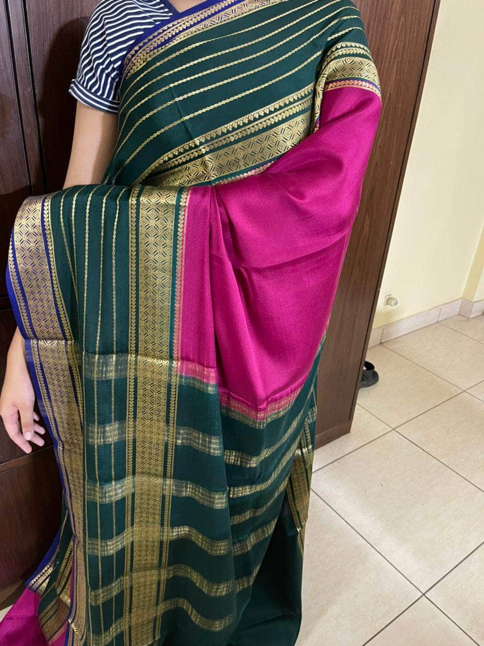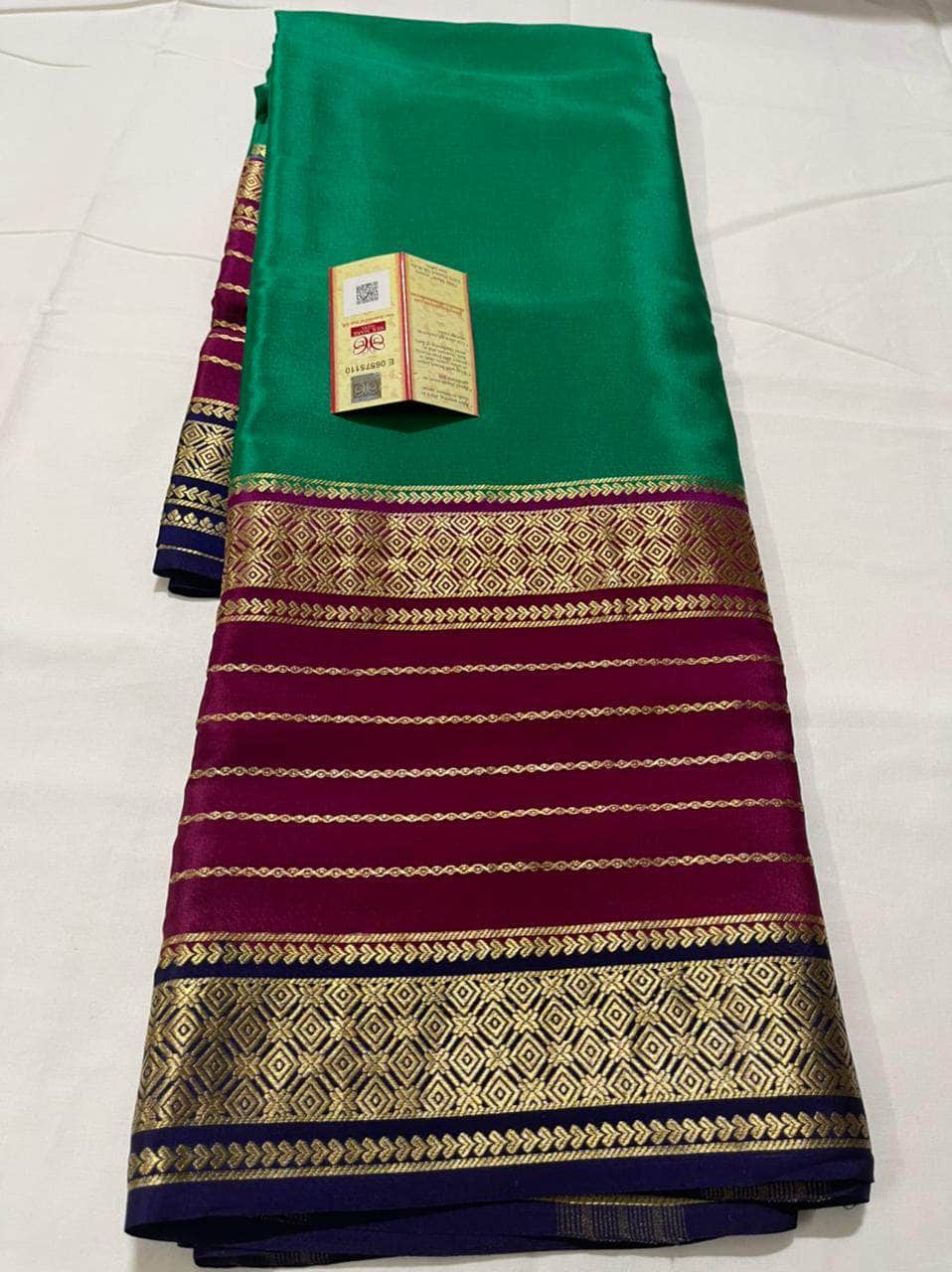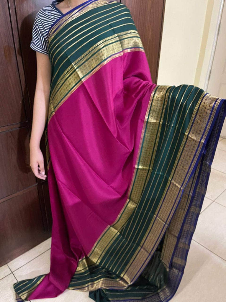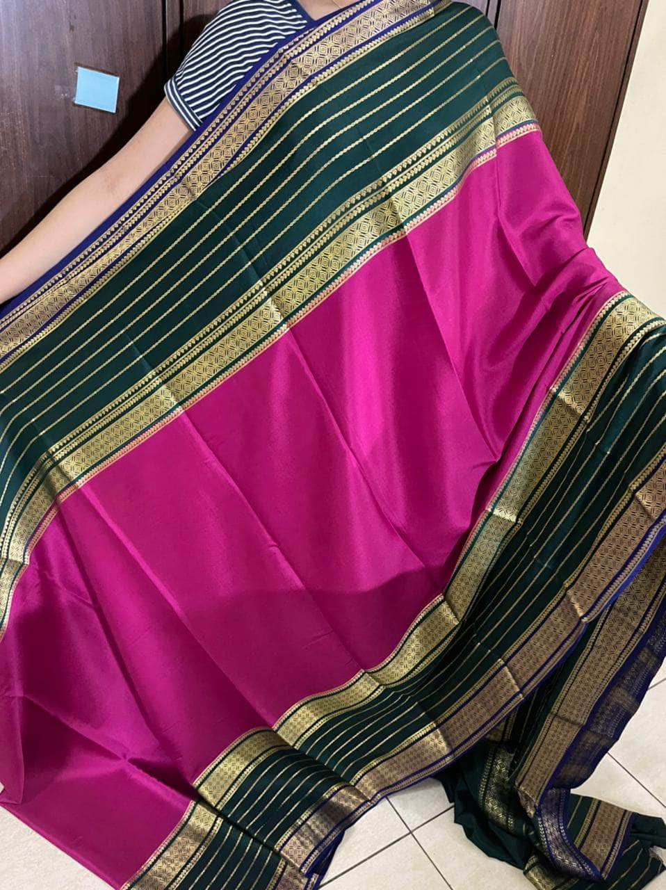 Fashion Vibes presents Pure South silk Sarees with 100 gram thickness. 3 Color combination with Bentex border which comes with horizontal thin lines in border contrast pallu n blouse piece.