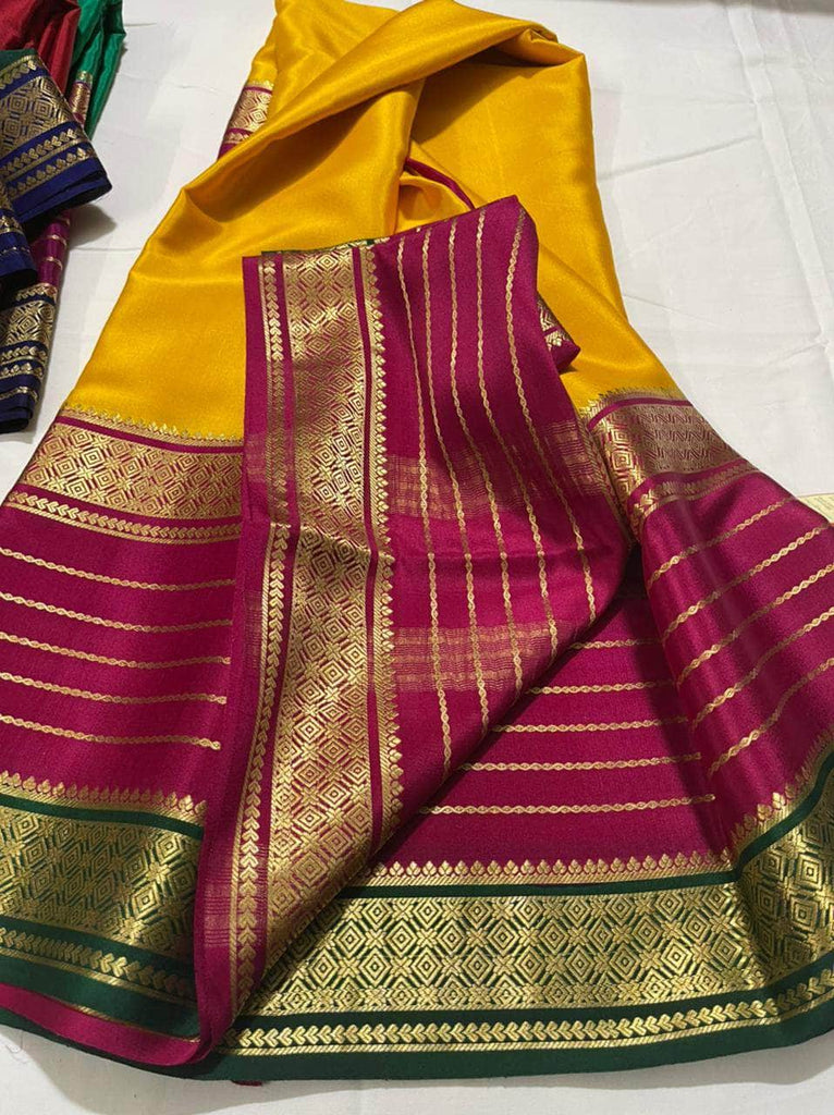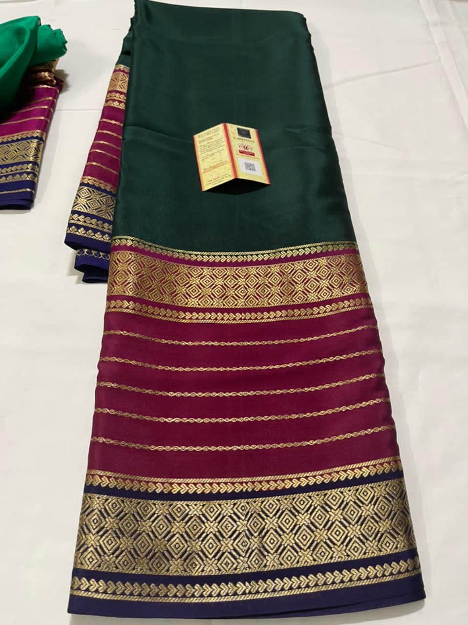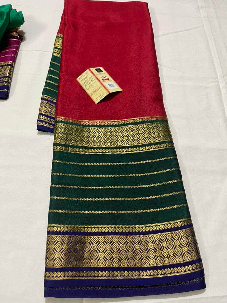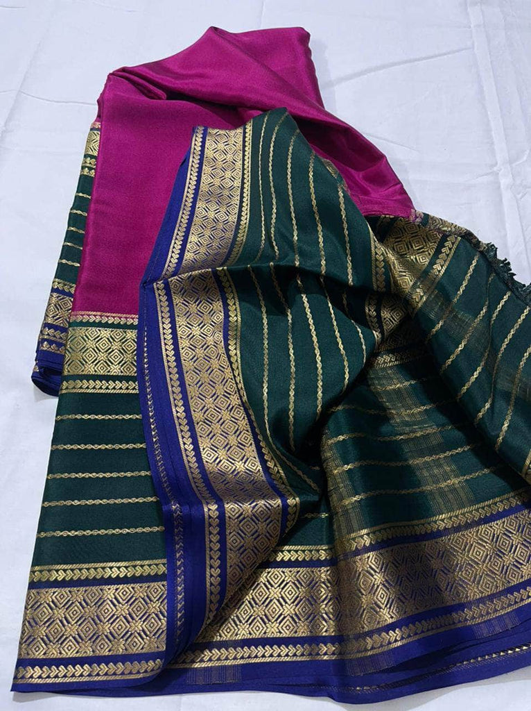 Fashion Vibes presents Pure South silk Sarees with 100 gram thickness. 3 Color combination with Bentex border which comes with horizontal thin lines in border contrast pallu n blouse piece.
