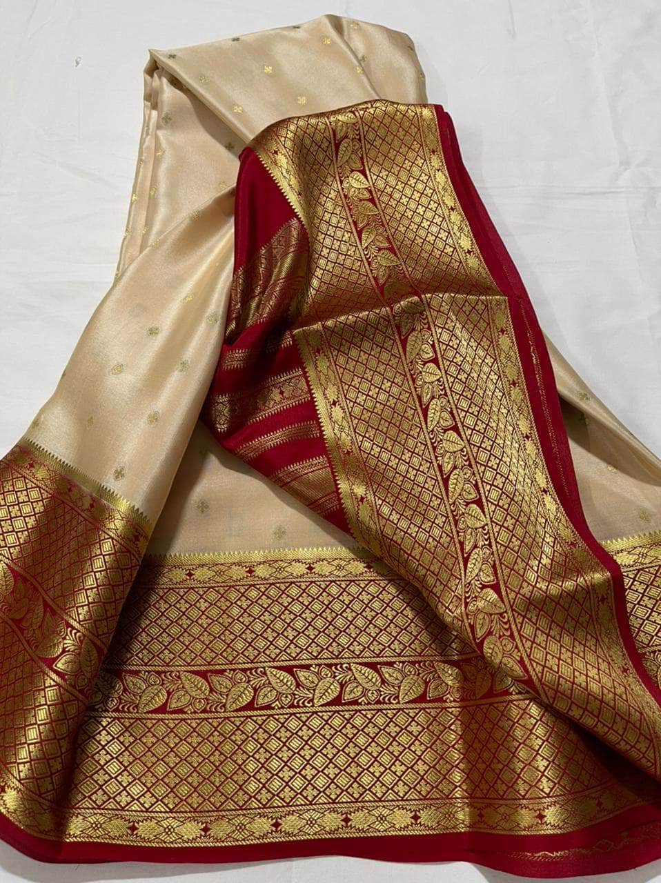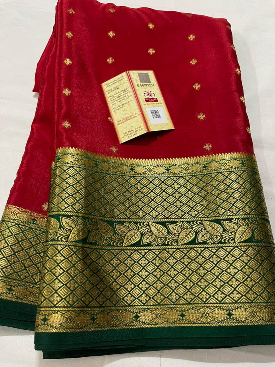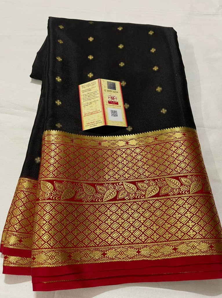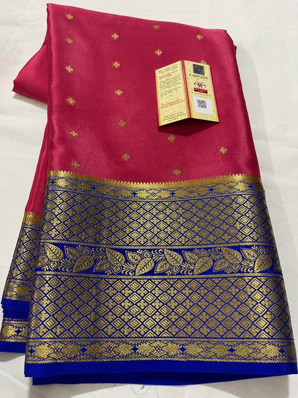 Fashion Vibes presents Pure South Silk Sarees with Rich Pallu 120 gram thickness. Long border with Motifs all over saree which comes with rich pallu and contrast border blouse has a long border.