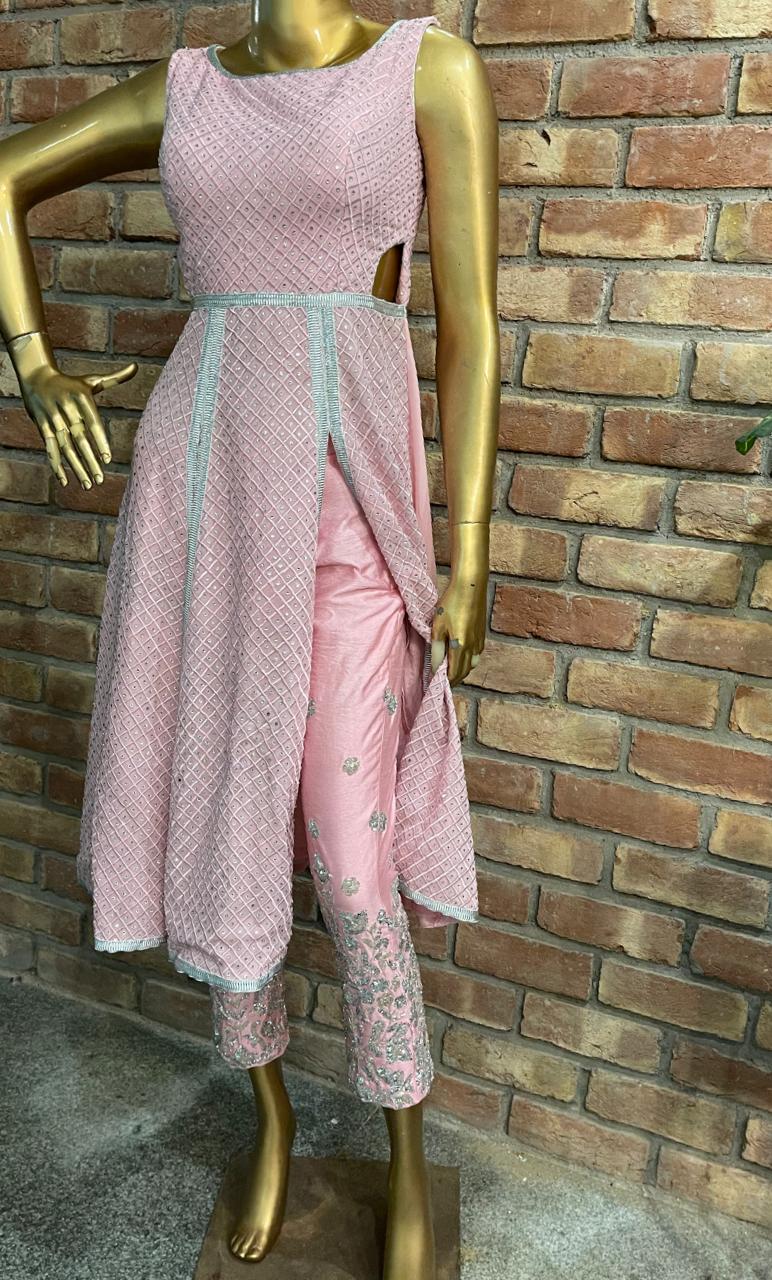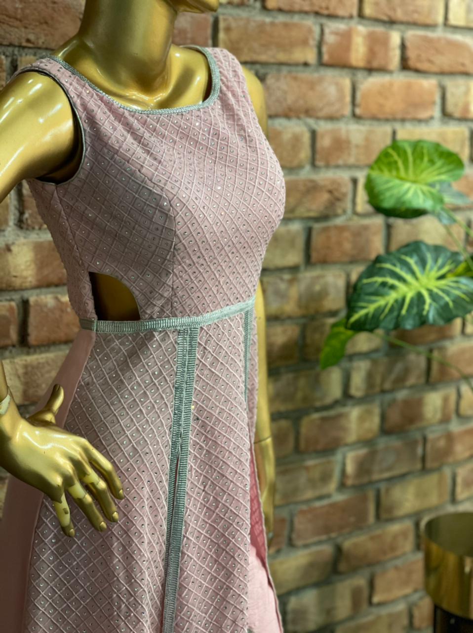 This beautiful Gown comes with silver zari handwork top and the bottom of the Gown.